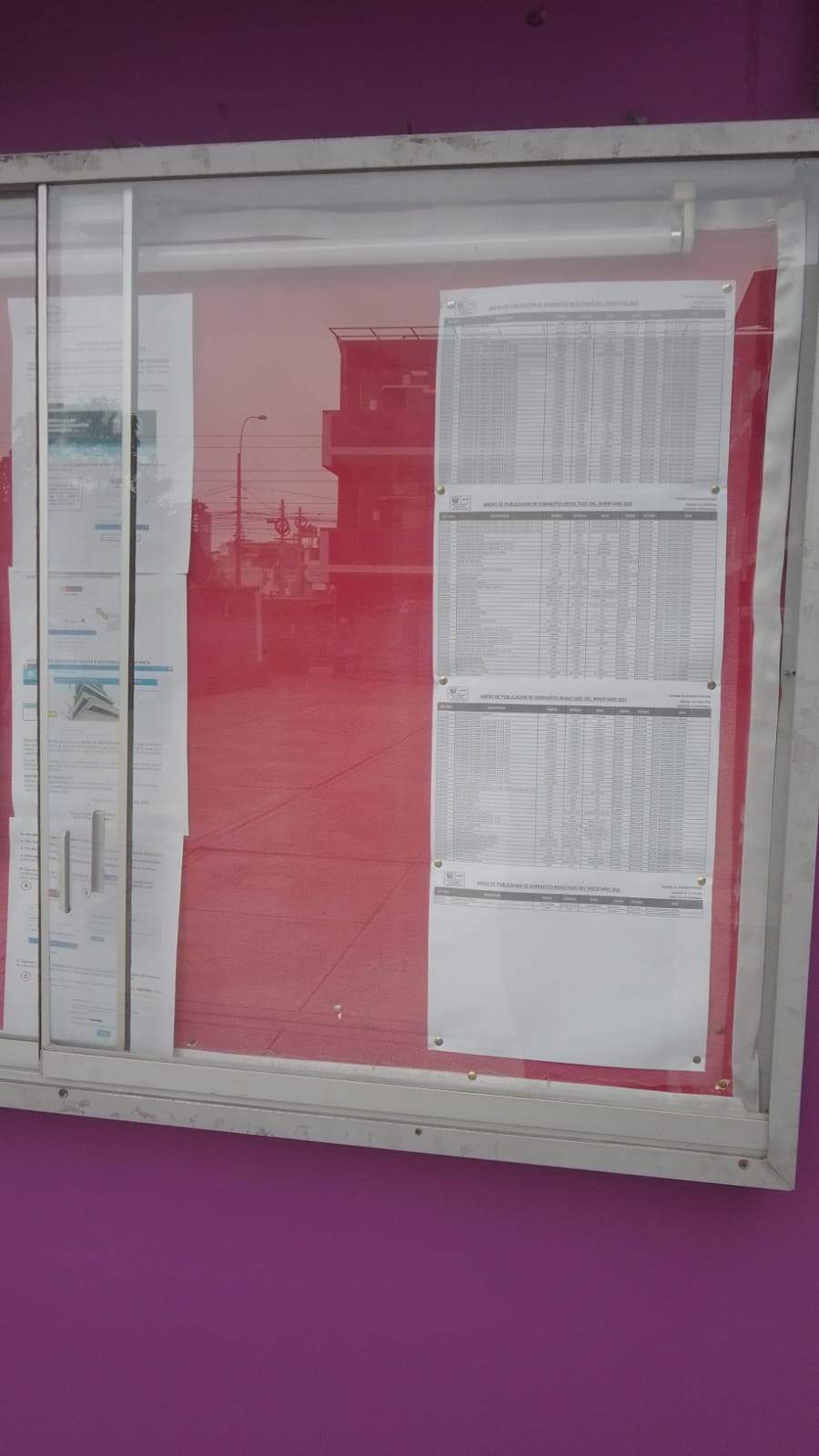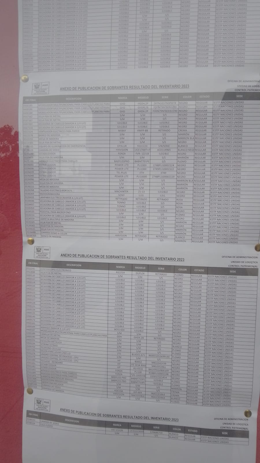 En el periodico mural del instituto se realizó la publicación de la relación detallada de los bienes objeto de saneamiento administrativo, por un plazo no menor a diez (10) días hábiles, para quienes consideren tener derecho de propiedad sobre los mismos y puedan ejercer su oposición